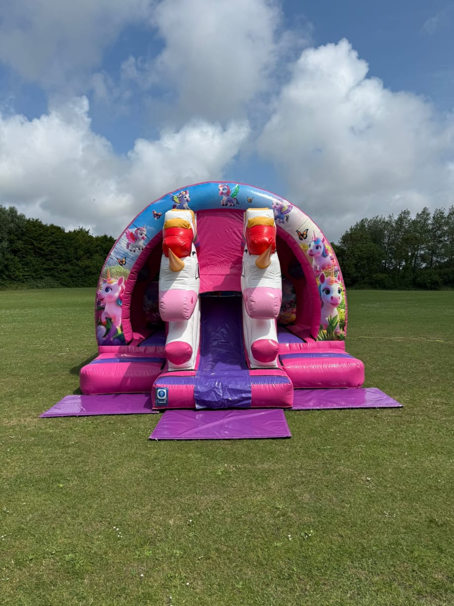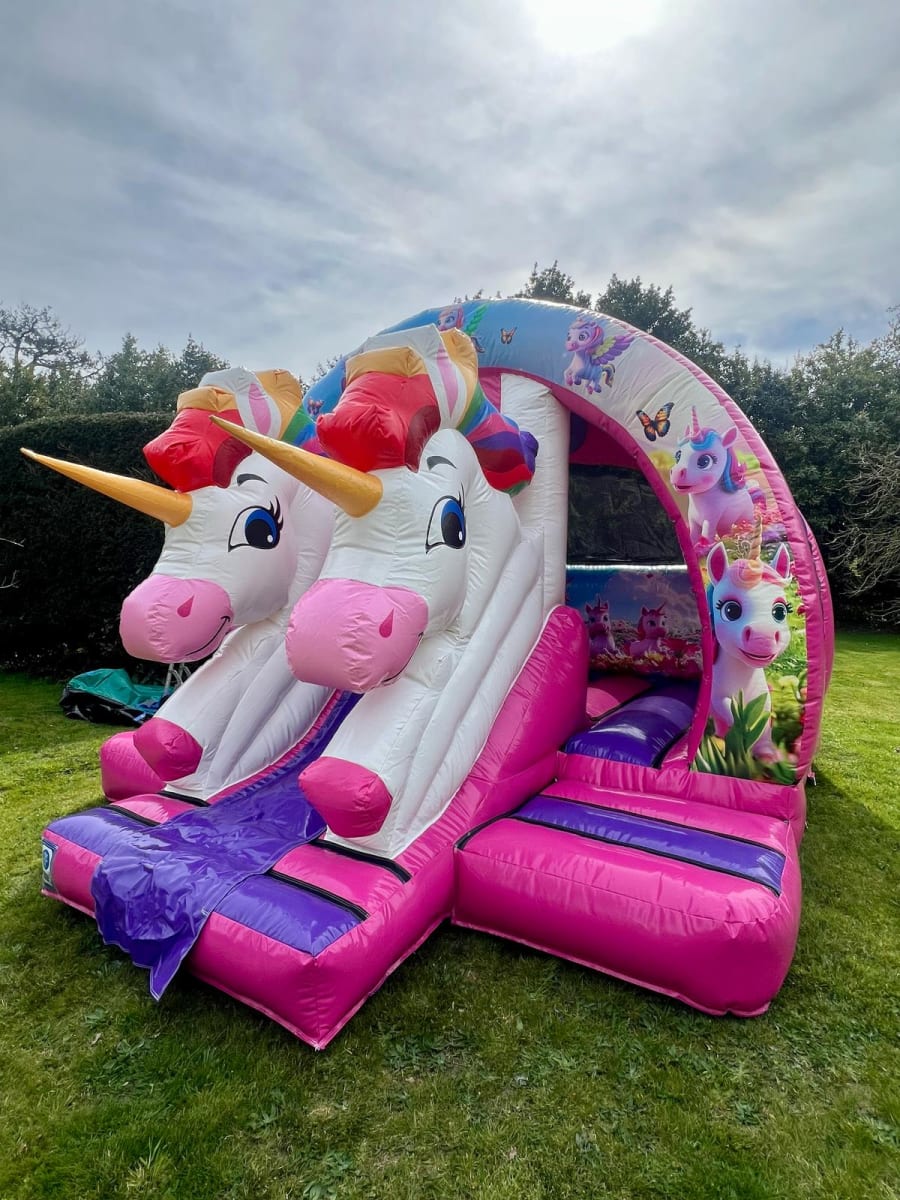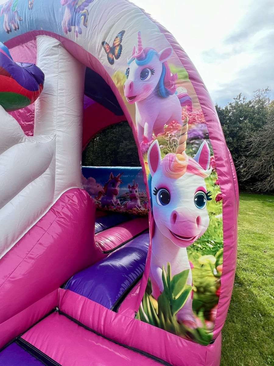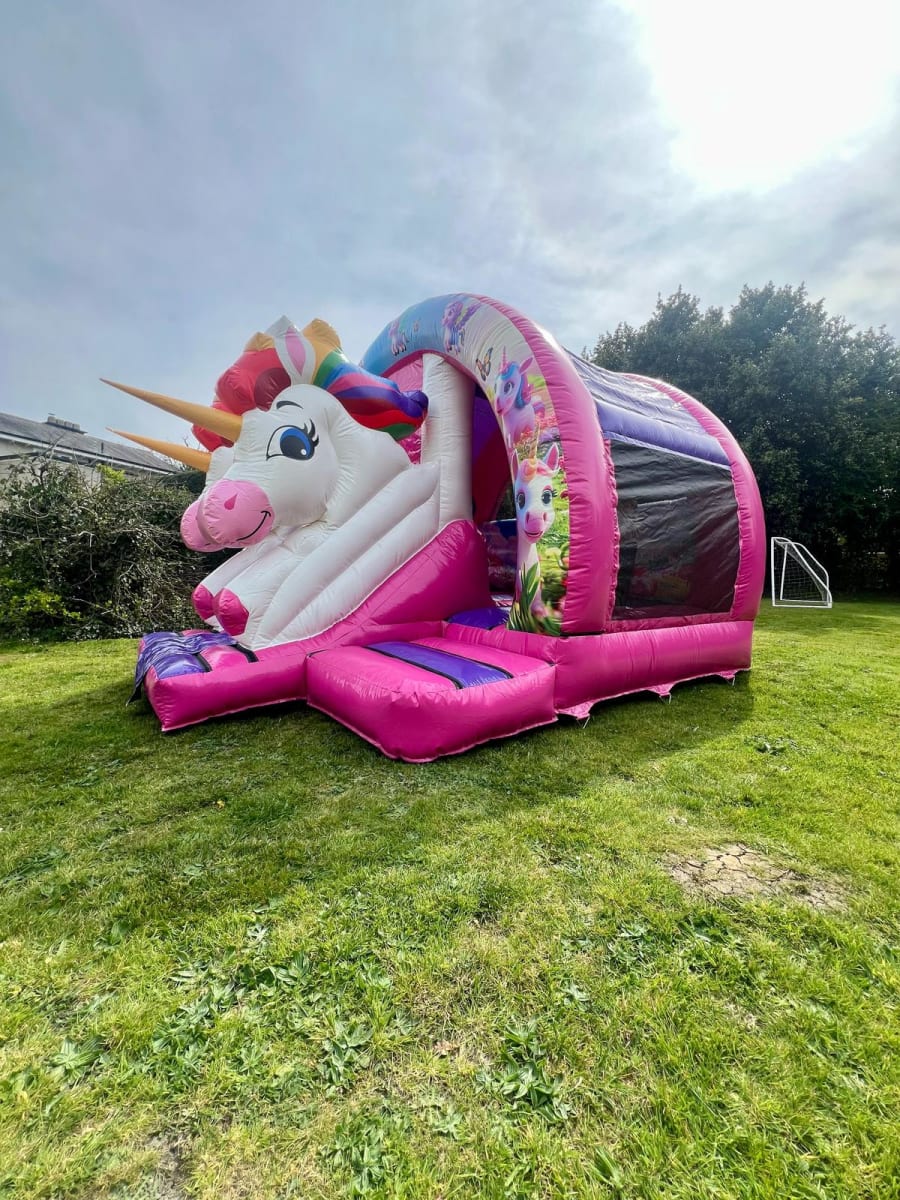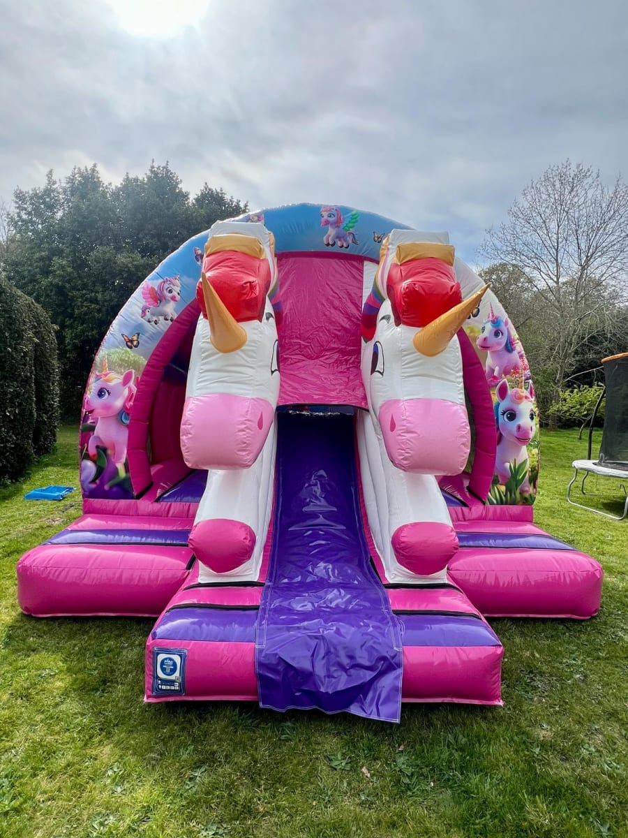 Calling all Unicorn lovers!! This bright, colourful new for 2025 curved 3D Unicorn Bounce and Slide combo is a real party favourite and suitable for just about any event, it would go down a treat at birthday parties, christenings, school fetes, fairs, fundraisers and any other occasion you could think of!