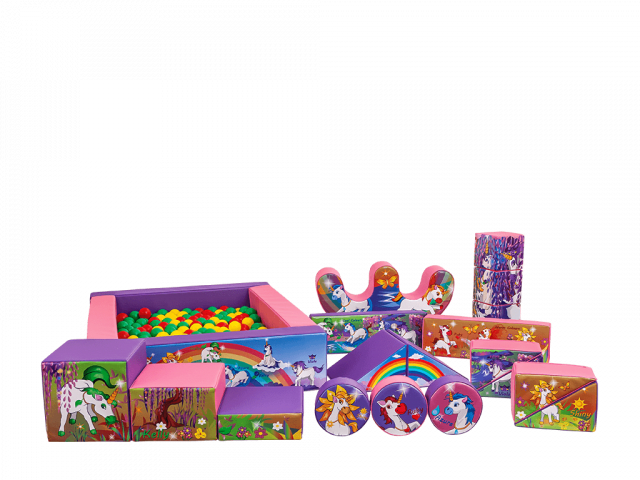 This brightly coloured Unicorn soft play set provides a ball pool, double rocker and 17 soft foam shapes for the children to play with for hours of fun and is the perfect addition to our 3D Unicorn Bounce and Slide castle, and Unicorn inflatable ball pool with jugglers.